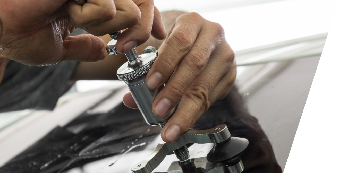 当店は、カーディーラーや鈑金塗装店から信頼されるガラス交換の協力店として、豊富な経験と実績を持つ石川県の自動車ガラス専門店です。