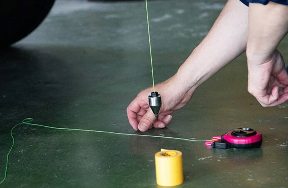 お客様の工場(平坦な場所が無い場合、弊社まで引き取りを行います)などで車両の水平や中心を取る作業を行います。