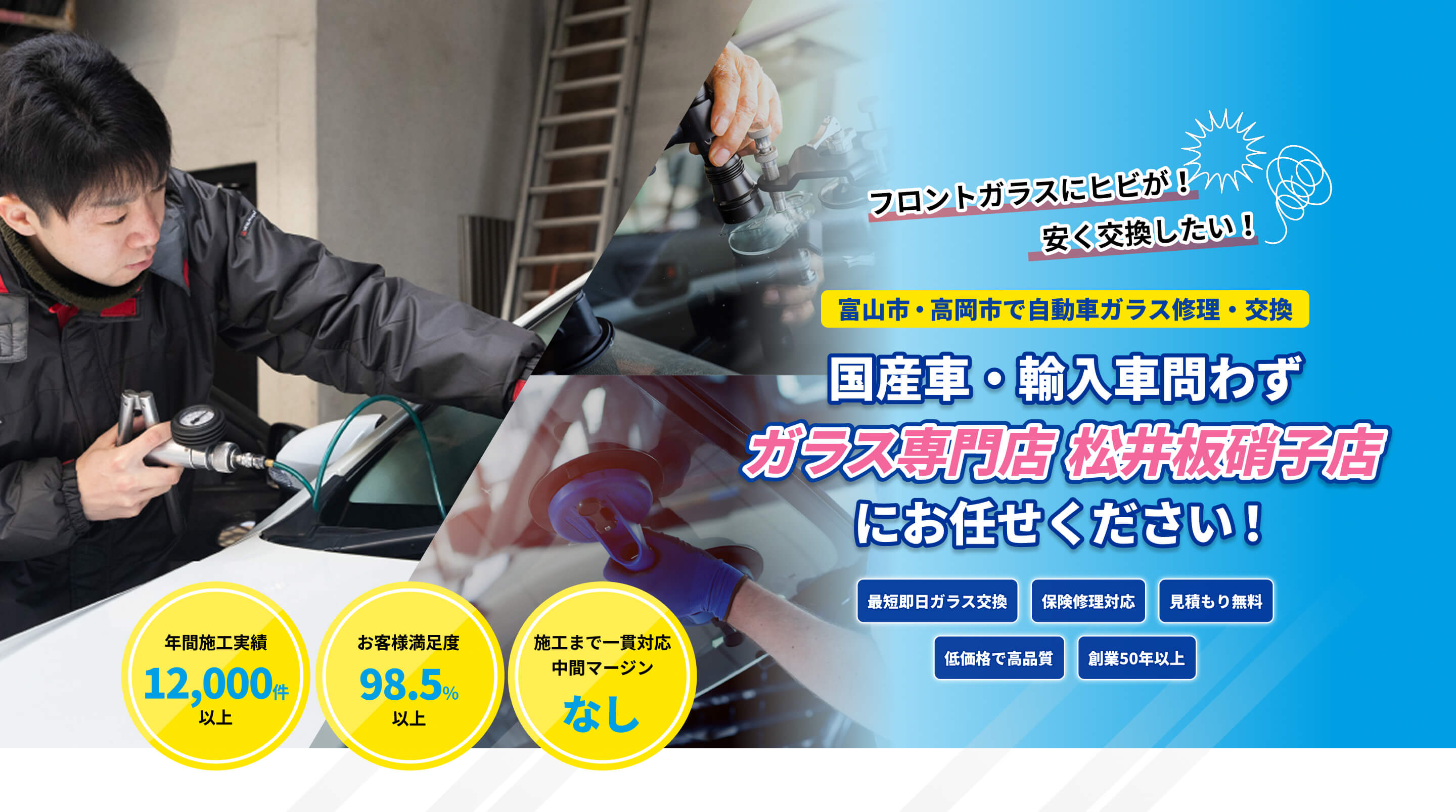 自動車ガラス修理交換専門店 松井板硝子は貴方の愛車をトータルにサポートいたします。